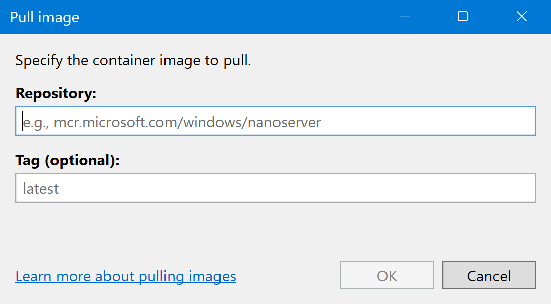 mcr.microsoft.com/windows/nanoserveras the repository to pull an image of Windows Nano Server. -