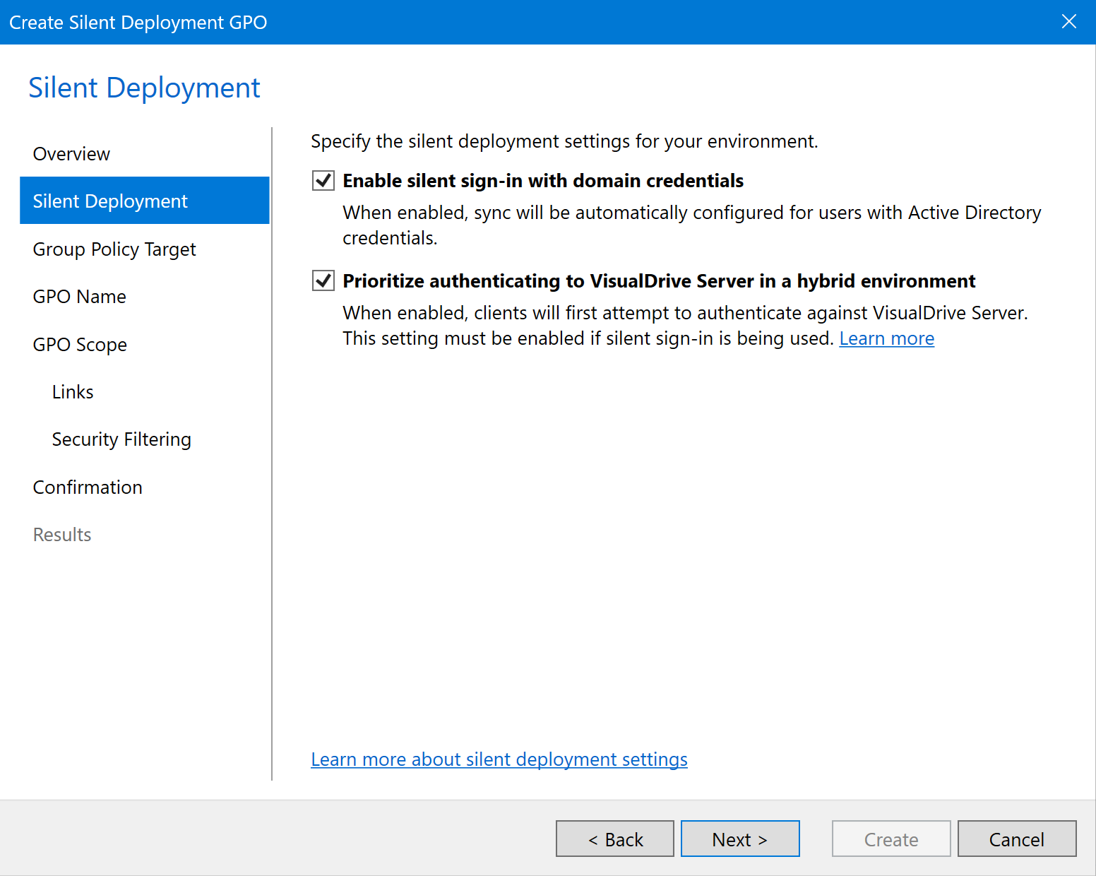 Prioritize authenticating to VisualDrive Server in a hybrid environment: You must enable this option if silent sign-in with domain credentials is active. If disabled, the OneDrive sync app may prioritize to sign users into SharePoint Online in a hybrid environment.