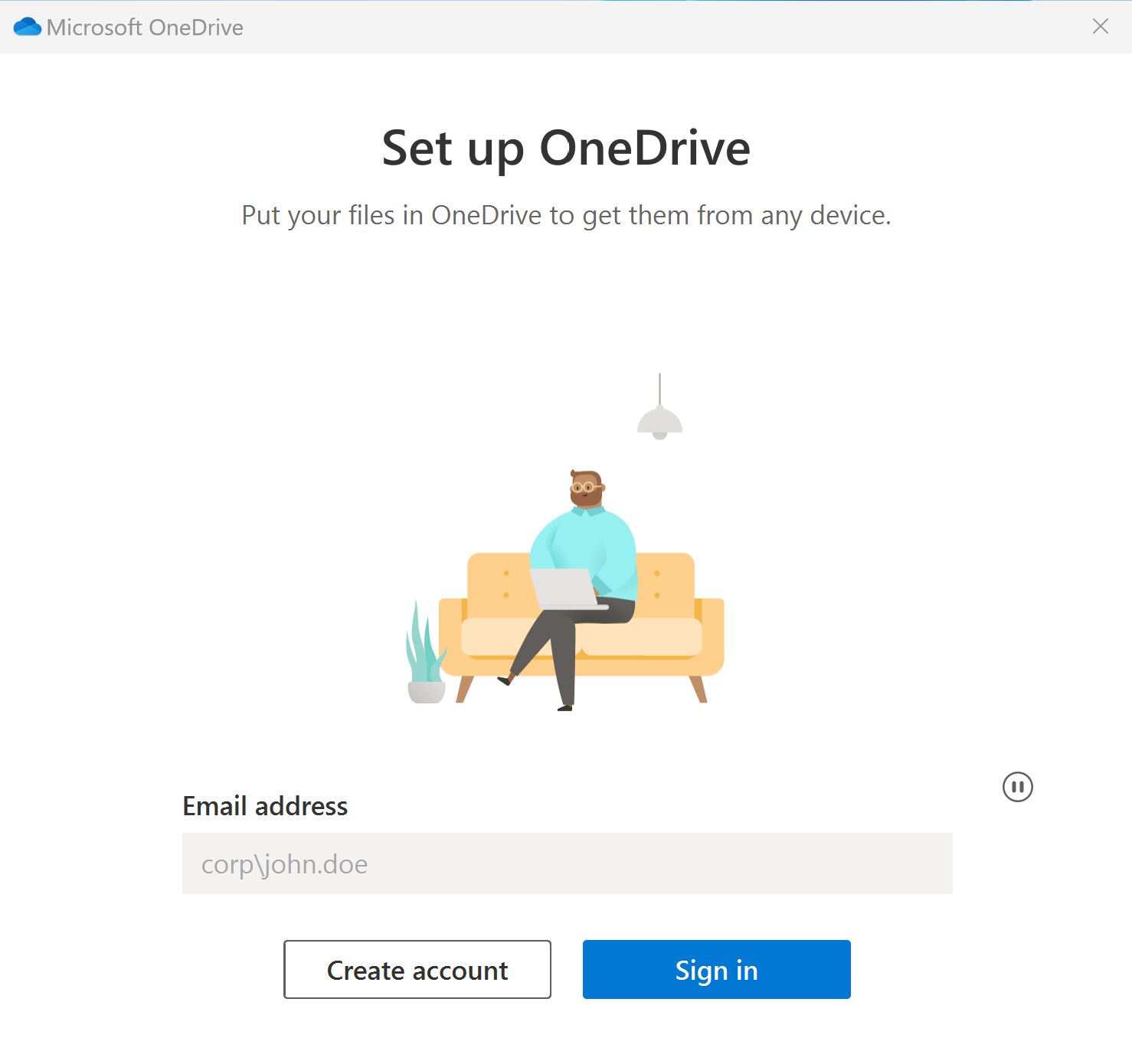 a Set up OneDrive window will appear with your username pre-filled. Click Sign in.